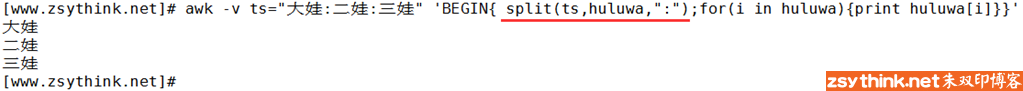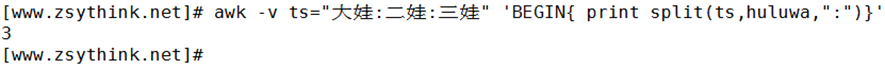 如上图所示,我们通过split函数,将字符串ts切割了,以”:”作为分割符,将分割后的字符串保存到了名为huluwa的数组中,当我们输出数组中的元素时,每个元素的值为分割后的字符,其实,split函数也有对应的返回值,其返回值就是分割以后的数组长度,示例如下。