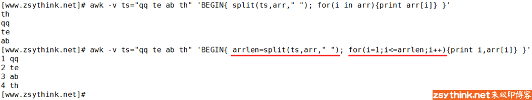 我们先使用了split函数生成了数组,并且将split的返回值保存在变量arrlen中,然后利用for循环中变量的递增,顺序的输出了数组中的对应下标以及元素值,如果你不明白为什么,请参考前文。